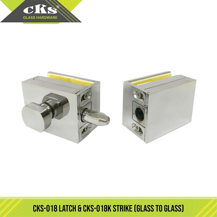 CKS-018 & 018K LATCH & STRIKE Latch & Strike Category: Locks Description Description Fit for glass thickness : 10, 12mm Material : Zinc Alloy Finish : Bright Chrome Plated (CP) Related products CKS-50R PATCH LOCK Read more CKS-007 PATCH LOCK Read more CKS-035 & 035K PATCH LOCK & STRIKE BOX Read more CKS-013 & 013K PATCH LOCK & STRIKE BOX Read more