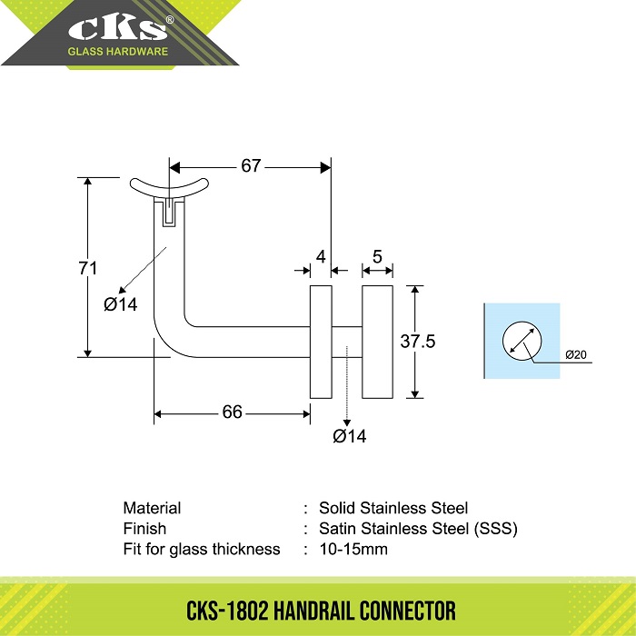 CKS-1802 HANDRAIL CONNECTOR Category: Handrail Connectors Description Description Material : Stainless Steel Finish : Satin Stainless Steel (SSS) Fit for glass thickness : 10-15mm Related products CKS-1814 HANDRAIL CONNECTOR Read more CKS-1810 HANDRAIL CONNECTOR Read more CKS-1805 HANDRAIL CONNECTOR Read more