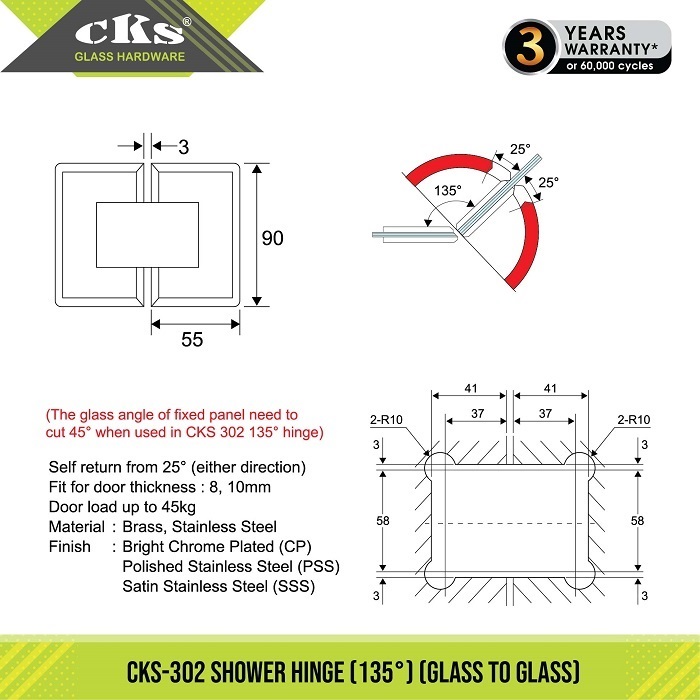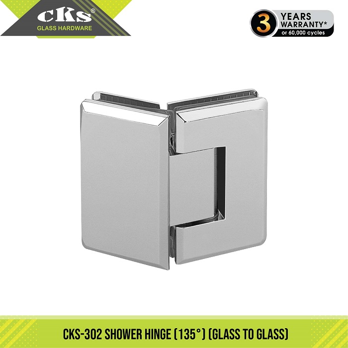 (The glass angle of fixed panel need to cut 45° when used in CKS 302 135° hinge)