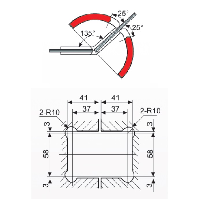 (The glass angle of fixed panel need to cut 45° when used in CKS 302 135° hinge)