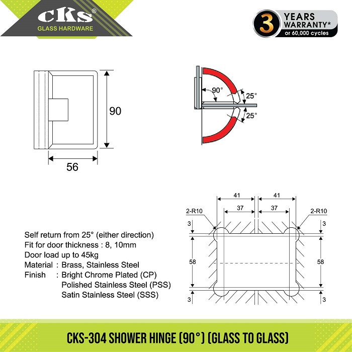 Maximum Frameless Glass Door Dimension For CKS Shower Hinge (CKS-304)