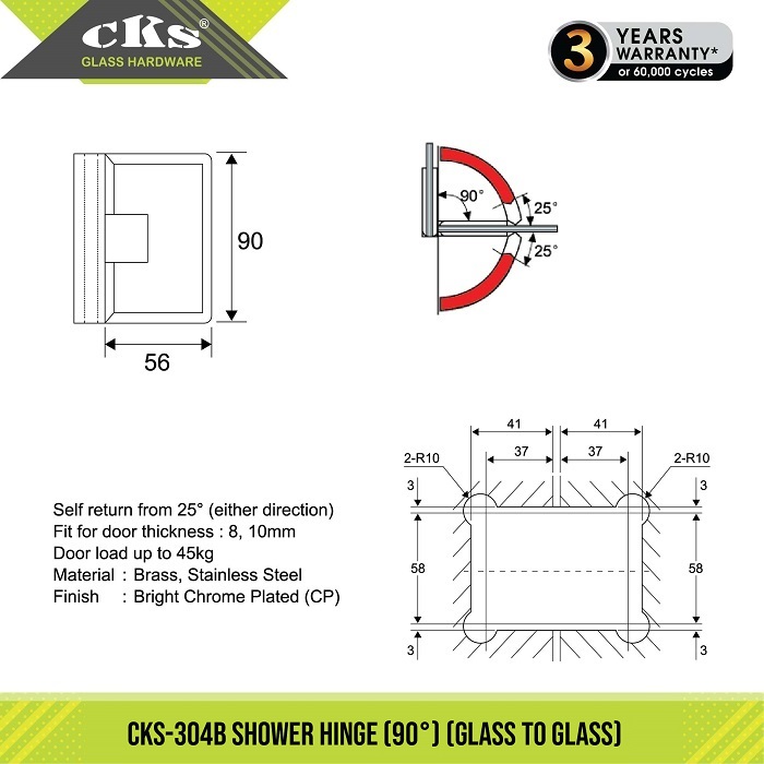 CKS-304B SHOWER HINGE (90′)(GLASS TO GLASS)