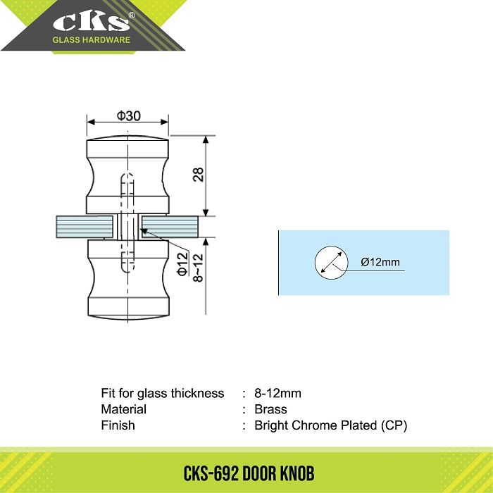 CKS-692 DOOR KNOB Category: Door Knobs Description Description Fit for glass thickness 8mm – 12mm Material Brass Finish Bright Chrome Plated (CP) Related products CKS-693 DOOR KNOB Read more CKS-695 DOOR KNOB Read more CKS-694 DOOR KNOB Read more CKS-696 DOOR KNOB Read more