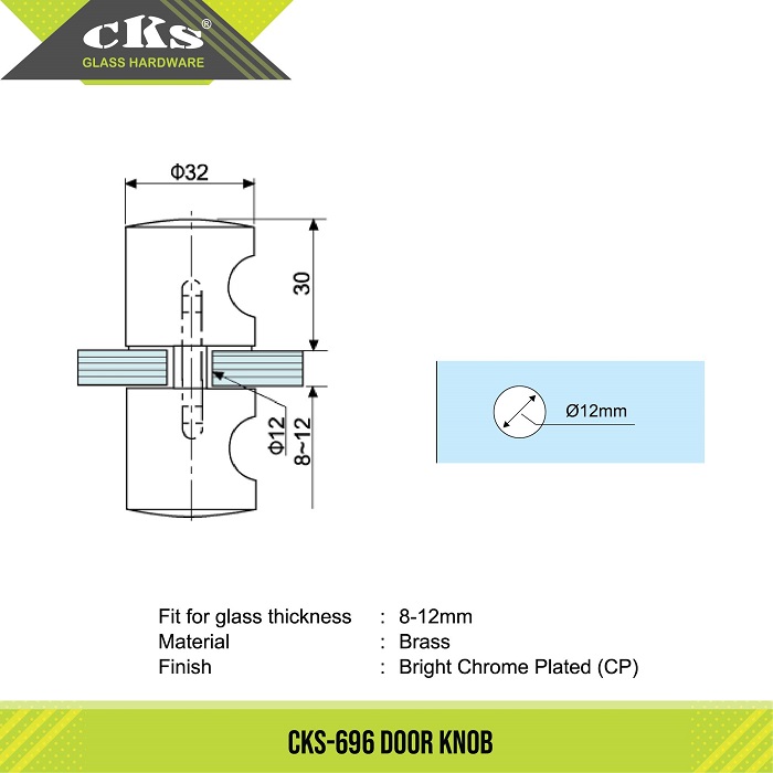 CKS-696 DOOR KNOB Category: Door Knobs Description Description Fit for glass thickness 8mm – 12mm Material Brass Finish Bright Chrome Plated (CP) Related products CKS-691 DOOR KNOB Read more CKS-695 DOOR KNOB Read more CKS-697 DOOR KNOB Read more CKS-692 DOOR KNOB Read more