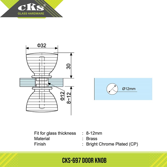 CKS-697 DOOR KNOB Category: Door Knobs Description Description Fit for glass thickness 8mm – 12mm Material Brass Finish Bright Chrome Plated (CP) Related products CKS-694 DOOR KNOB Read more CKS-693 DOOR KNOB Read more CKS-698 DOOR KNOB Read more CKS-691 DOOR KNOB Read more