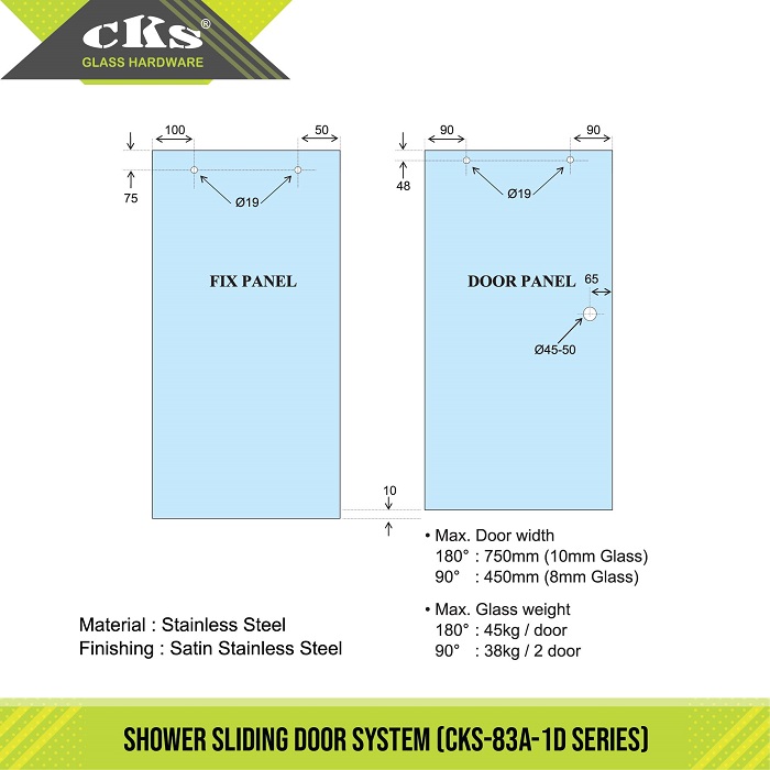 CKS-83A-1D SLIDING DOOR ROLLER SLIDING DOOR ROLLER CKS-83A-1D ROLLER WARRANTY LETTER Category: CKS-83A Shower Sliding Door System Related products CKS-83A-3D GLASS CONNECTOR FOR TRACK Read more CKS-83A-19 END CONNECTOR FOR TRACK Read more CKS-83A-11 90′ TRACK CONNECTOR Read more CKS-83A-2D WALL CONNECTOR FOR TRACK Read more