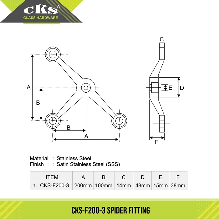 Maximum Frameless Glass Panel Dimension For CKS Spider Fitting (CKS-F200)