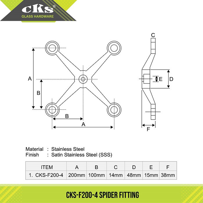 Maximum Frameless Glass Panel Dimension For CKS Spider Fitting (CKS-F200)