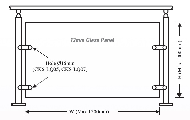CKS-LQ05 (D 90′) HANDRAIL Category: Handrail Series Description Description Standard Height : 1050mm Material : Stainless Steel Finish : Satin Stainless Steel (SSS) Maximum Frameless Glass Panel Dimension for Handrail (CKS-LQ 05) Related products CKS-LQ01(90′) HANDRAIL Read more CKS-LQ05 (S) HANDRAIL Read more CKS-LQ01(S) HANDRAIL Read more CKS-LQ07 (D 90′) HANDRAIL Read more