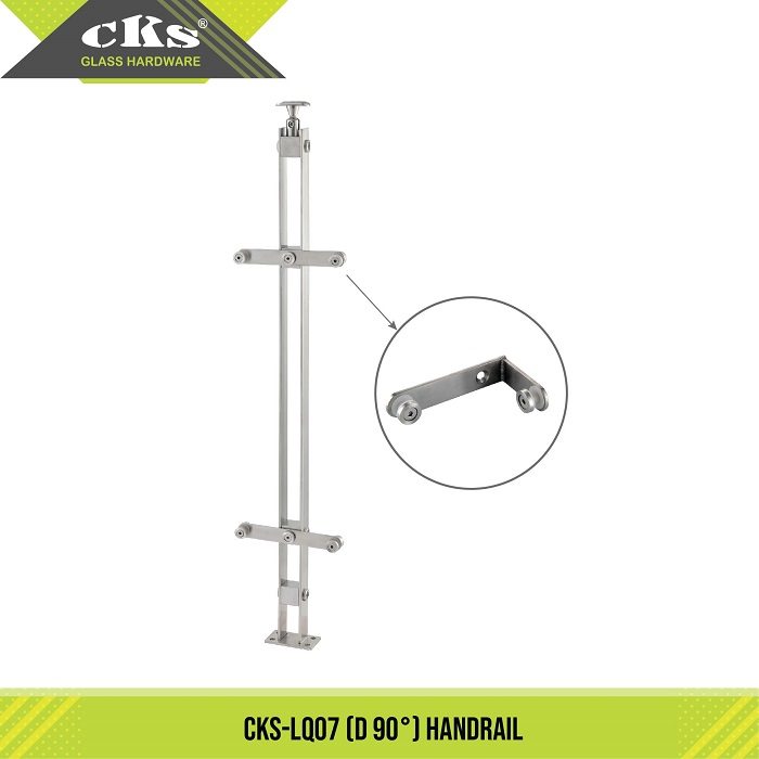 CKS-LQ07 (D 90′) HANDRAIL Category: Handrail Series Description Description Standard Height : 1050mm Material : Stainless Steel Finish : Satin Stainless Steel (SSS) Maximum Frameless Glass Panel Dimension for Handrail (CKS-LQ 07) Related products CKS-LQ01(D 180′) HANDRAIL Read more CKS-LQ DS 180 DOUBLE SIDE CONNECTOR (180′) Read more CKS-LQ05 (D 90′) HANDRAIL Read more CKS-LQ07 (S) HANDRAIL Read more