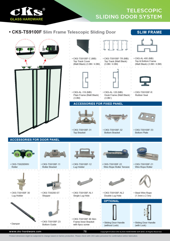 CKS-TS9100F SLIM FRAME TELESCOPIC SLIDING DOOR SLIM FRAME Category: Telescopic Sliding Door System Description Description Related products CKS-TS9200 TELESCOPIC SLIDING GLASS DOOR Read more